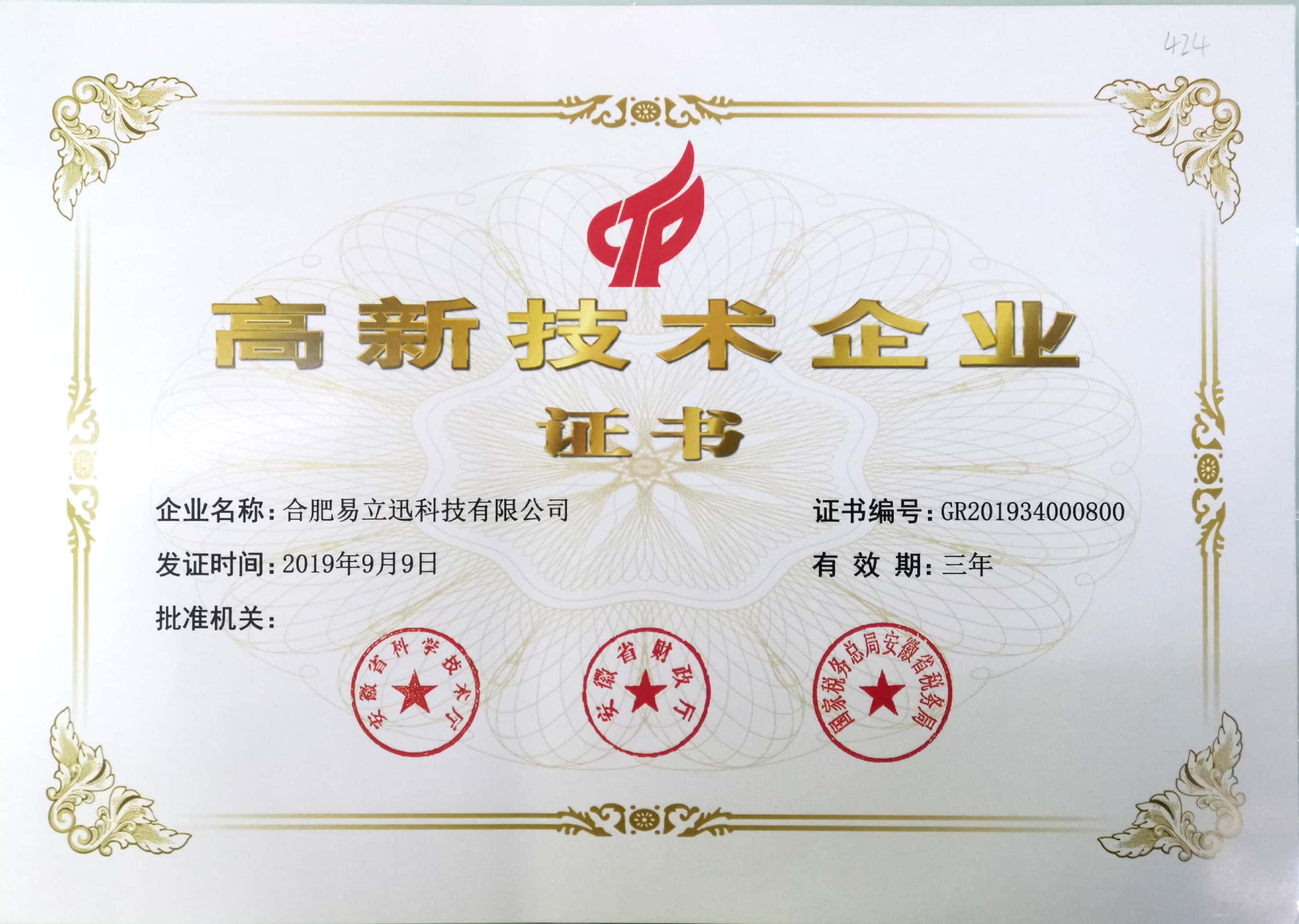 合肥易立迅科技有限公司(簡(jiǎn)稱“易立迅”)于2015年成立于合肥,首批注冊(cè)資金1000萬(wàn)元人民幣。2019年通過(guò)“高新技術(shù)企業(yè)”認(rèn)證。